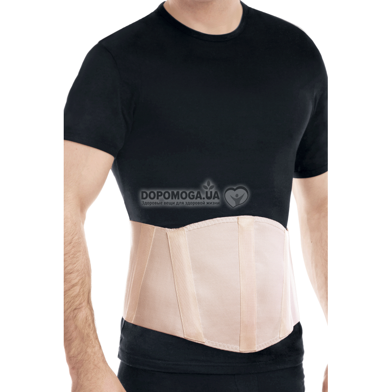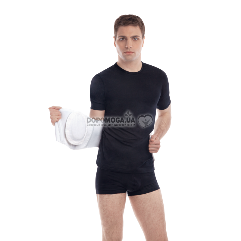 - Фиксируется на спине с помощью текстильной застежки, выпуклым элементом к пупочной грыже.